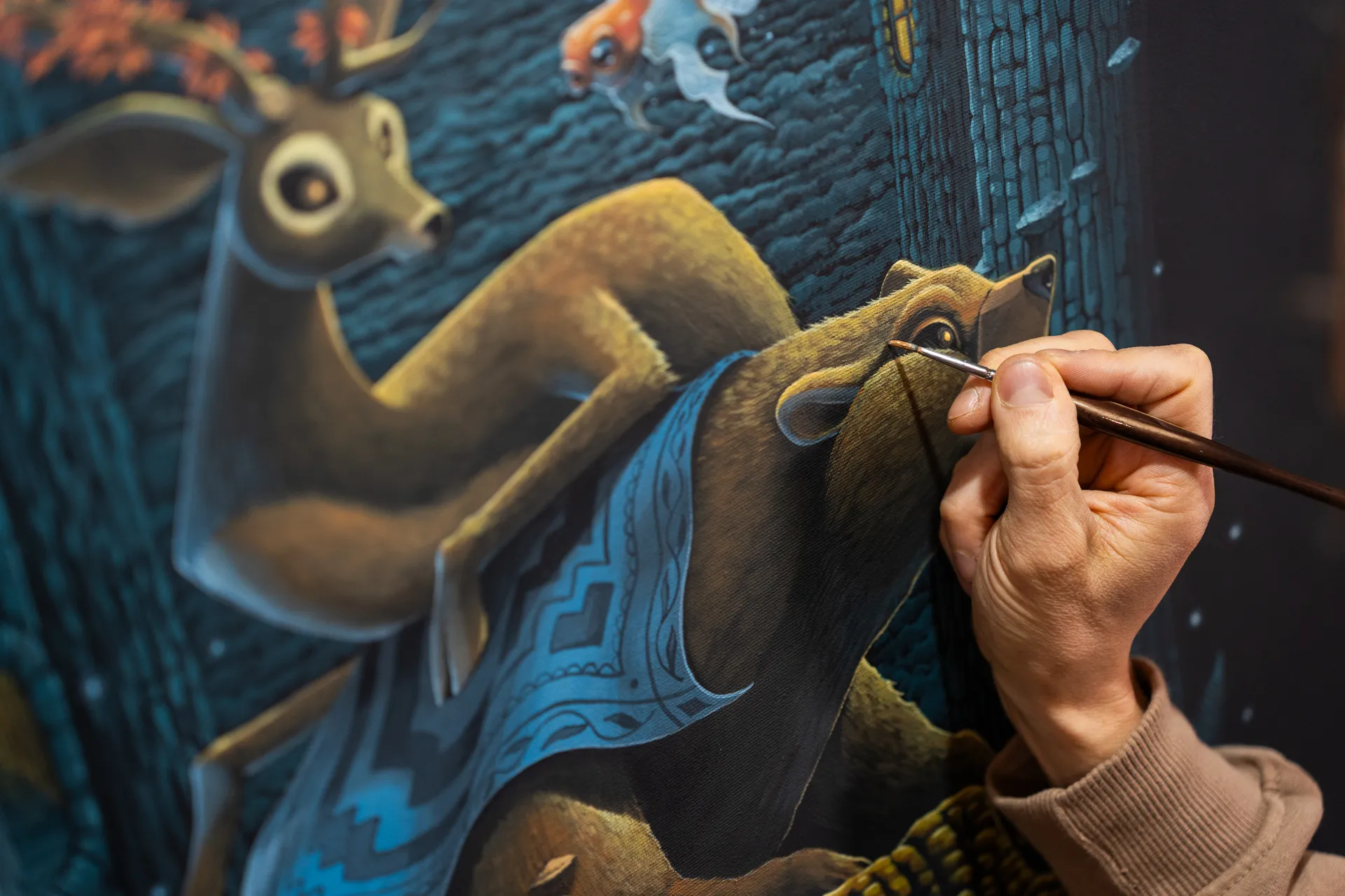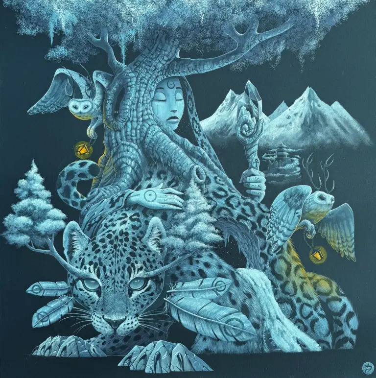 Dipingo su tela, legno e muri, seguendo un impulso che non nasce dalla mente, ma da qualcosa di più profondo.